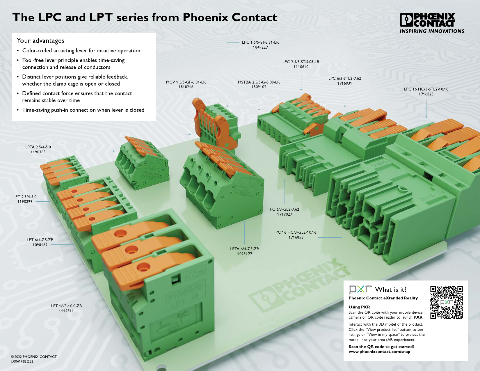 Phoenix Contact brings a new dimension of convenience to conductor connections. PCB terminal blocks and PCB connectors from the consistent LPT and LPC series combine the optimized usability of lever actuation with the reliability of the Push-in spring-cage connection. In this way you can connect conductors with cross sections of up to 25 mm² faster and more intuitive than ever before.