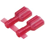 The PANDUIT part DNF18-111FIB-C is a high-quality, vibration resistant female disconnect that is perfect for various electrical applications. Made of durable brass and tin-plated for added protection against corrosion, this disconnect offers exceptional performance and longevity.This female disconnect features a red, fully insulated nylon housing, ensuring safe and reliable electrical connections. The tab size is 0.110 x 0.020 (2.8 x 0.5 mm), allowing for easy installation and compatibility with a wide range of terminals. It supports a wire range of 22-18 AWG (0.5-1.0 mm²), providing flexibility and versatility for different wire gauges.Measuring at 0.71 (18.0 mm) in length and 0.19 (4.8 mm) in width, this disconnect is compact and can fit into tight spaces. The funnel entry barrel configuration and butted seam barrel make it easy to insert wires securely, ensuring a strong connection. The PANDUIT DNF18-111FIB-C is sold in convenient bottles of 100, making it ideal for both professional electricians and DIY enthusiasts alike. Trust in the quality and reliability of PANDUIT for all your electrical connection needs.