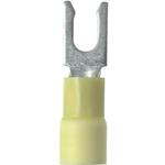 Locking Fork Terminal, vinyl insulated, 12- 10 AWG, #10 stud size, expanded insulation for large wire O.D., standard package.
